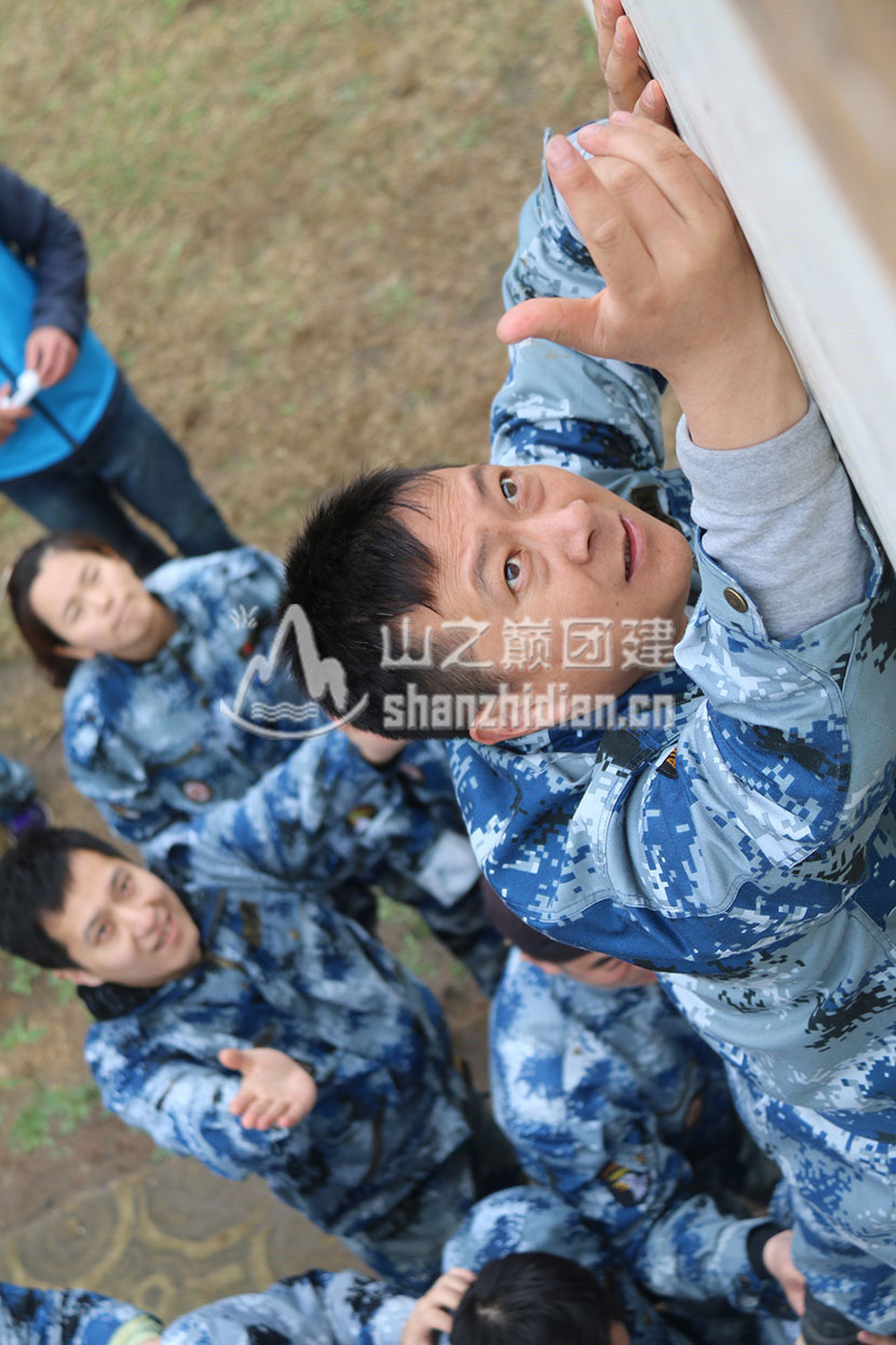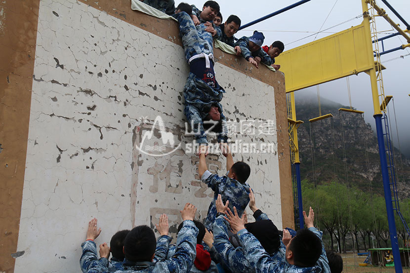毕业墙有时也叫海难逃生,因为常常将它安排在最后一个项目,所以也叫逃生墙或者胜利墙,国外通常称14英尺墙。这个项目让学员懂得个人目标与团队目标的关系,只有团队获得胜利才有真正的胜利。全队所有成员在规定的时间内翻越一面高4.2米的光滑墙面,在此过程中,大家不能借助任何外界的工具,包括:衣服、皮带、绳子等。所能用的资源只有每个人的身体。