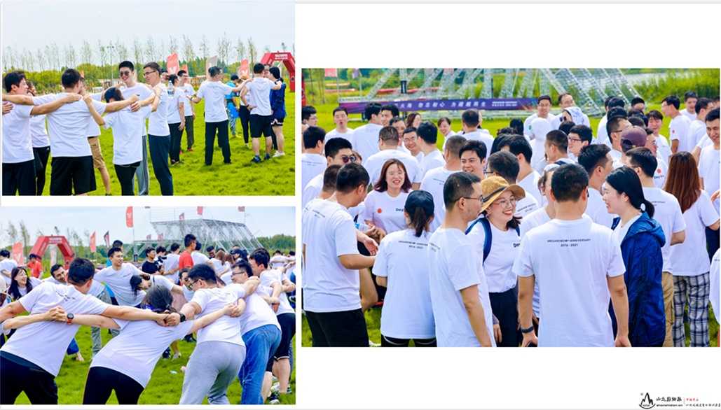 在山之巅教练老师的指导教学中,苏州镁伽科技公司的成员们开始了破冰热身活动。在教练的引导下,成员们肩并肩站成一个圆,一起完成勾肩搭背操,其目的是为了来消除互相之间的拘束感。随后进行了分组、起队名、队训及LOGO等小组建设,在阶段最后,成员们进行了团队文化展示,教练老师也为大家讲解了活动规则与注意事项。
