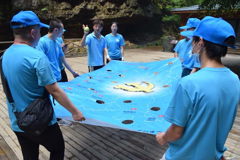 游戏规则也是非常的简单,需要成员们双手拉住世界球地图的边缘,通过左右移动让小球到达指定地点,中途小球不可以掉落,否则需要返回起点从新开始。在活动过程中,成员们不仅可以学会如何进行有效的沟通与交流,还能提高团队的执行力与团结协作力,提升团队的凝聚力;细节决定成败,态度决定一切,团队需要每个人的付出,才能有好的收获;团队成员之间相互鼓励,才能共同进步。