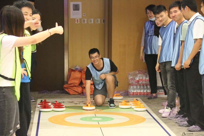 北京团建——新员工室内拓展培训之旱地冰壶团建活动。2021年9月中旬,中科晶上团队的新员工们在室内的体育场馆里,开展了一场以“为国分忧、与民造福、携手同行、共创幸福”为主题的旱地冰壶团建活动。此次团建活动的“主角”——旱地冰壶,是一项以团队为单位,在平滑地面上进行的投掷性运动项目;通过让本方冰壶球停在预先设定好的位置,或将对方的冰壶球击出,达到制胜的目的。本次活动的主要目的不光是为了让中科晶上新来的小伙伴们激发出个人潜力,增强团队的合作力与凝聚力,更是为了让大家可以尽快的融入到中科晶上这个“大家庭”里面来。